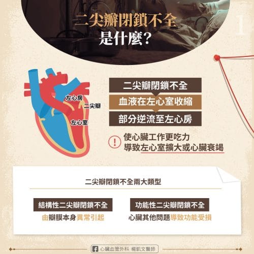 - 左心室功能障礙和左心室擴大:當左心室功能異常或擴大時,會導致二尖瓣環隨之擴大,引起閉鎖不全。